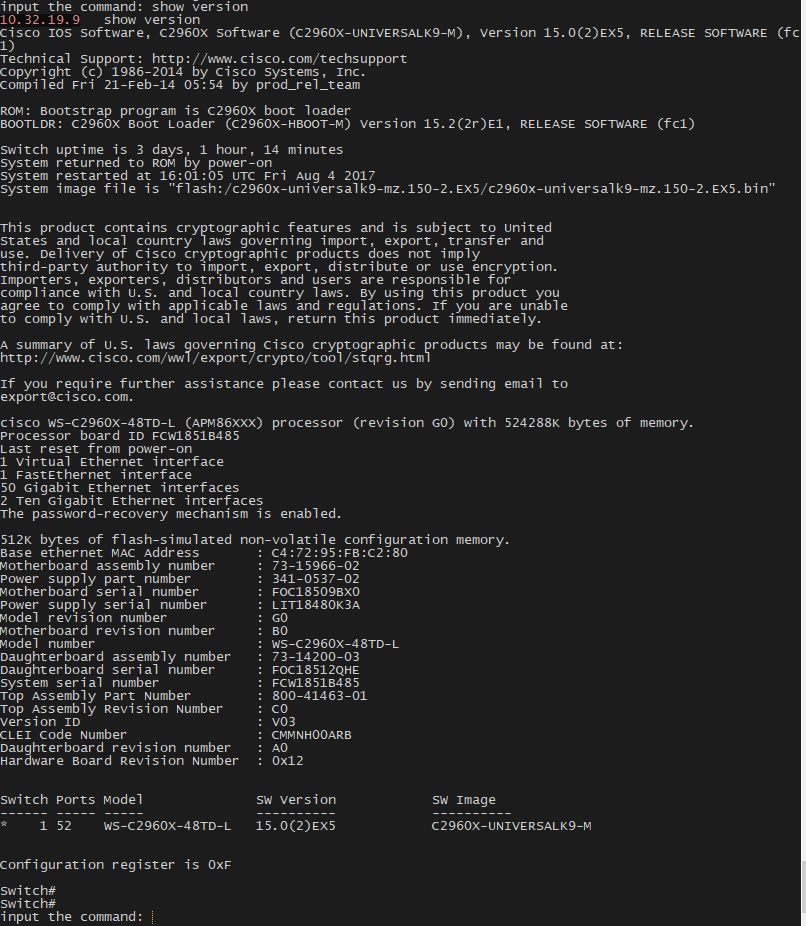 tn.read_until('Switch#')