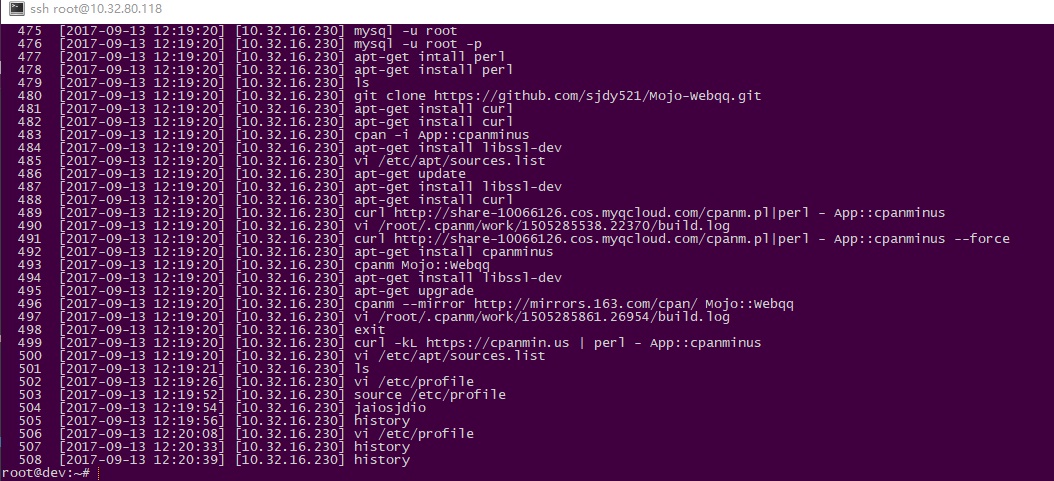 第一行定义history格式 第二行第一history最大存储 第三行让所有用户操作都能即时写入history中,而不是退出session时再写入(如果同时又几个用户登录,可能导致history事件错乱)