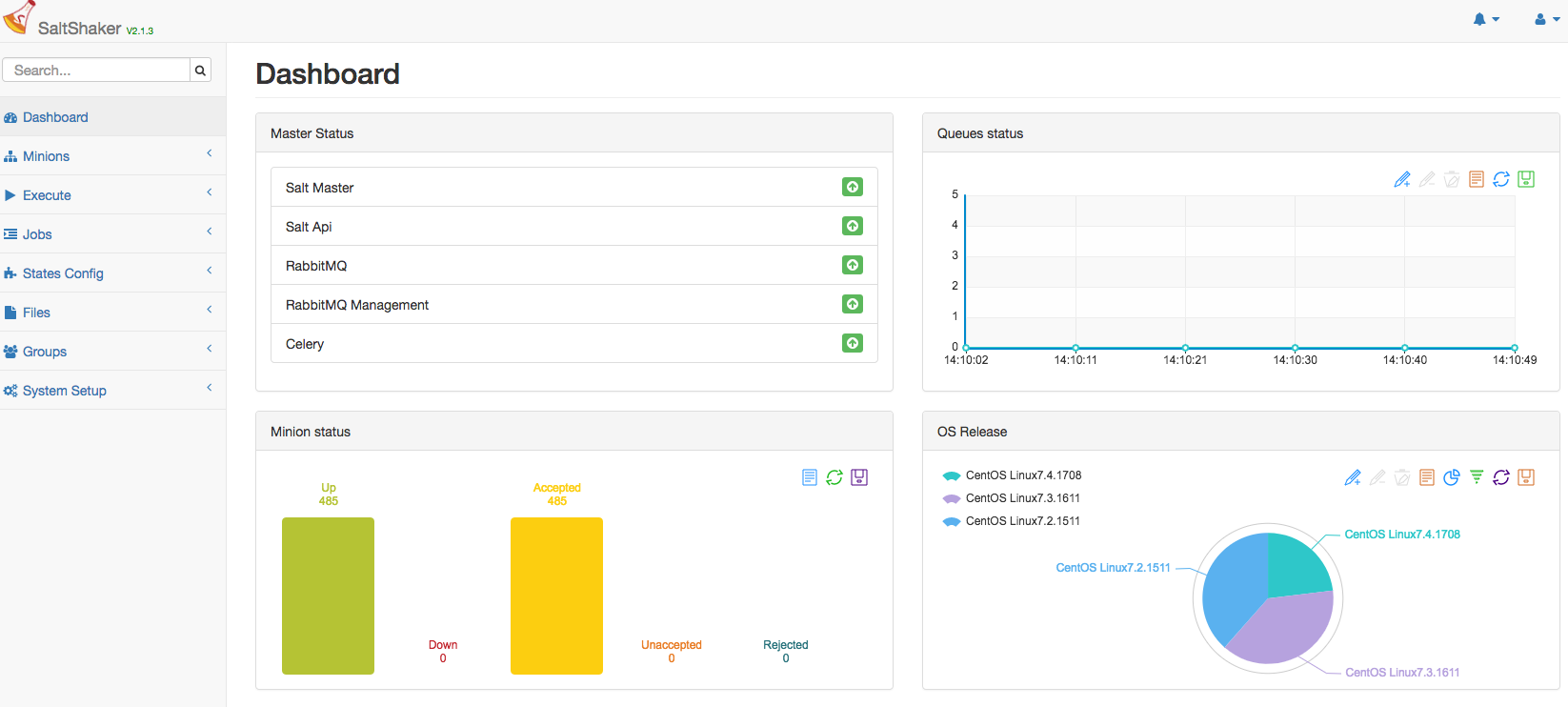 salt的webui,官方的是halite,但已经被放弃了,不维护很久了 尝试过其他几个star比较的开源实现,比如saltpad,但要么就是bug满天飞,要么就是技能栈不符难以二次开发 最后发现了一个开源实现叫saltshaker的不错,最终效果如下