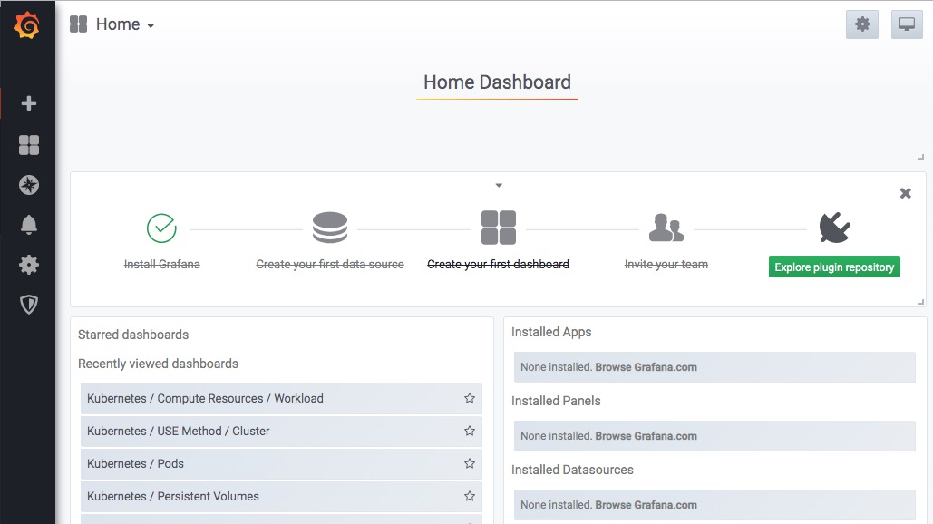 Then access via http://localhost:3000 and use the default grafana user:password of admin:admin.